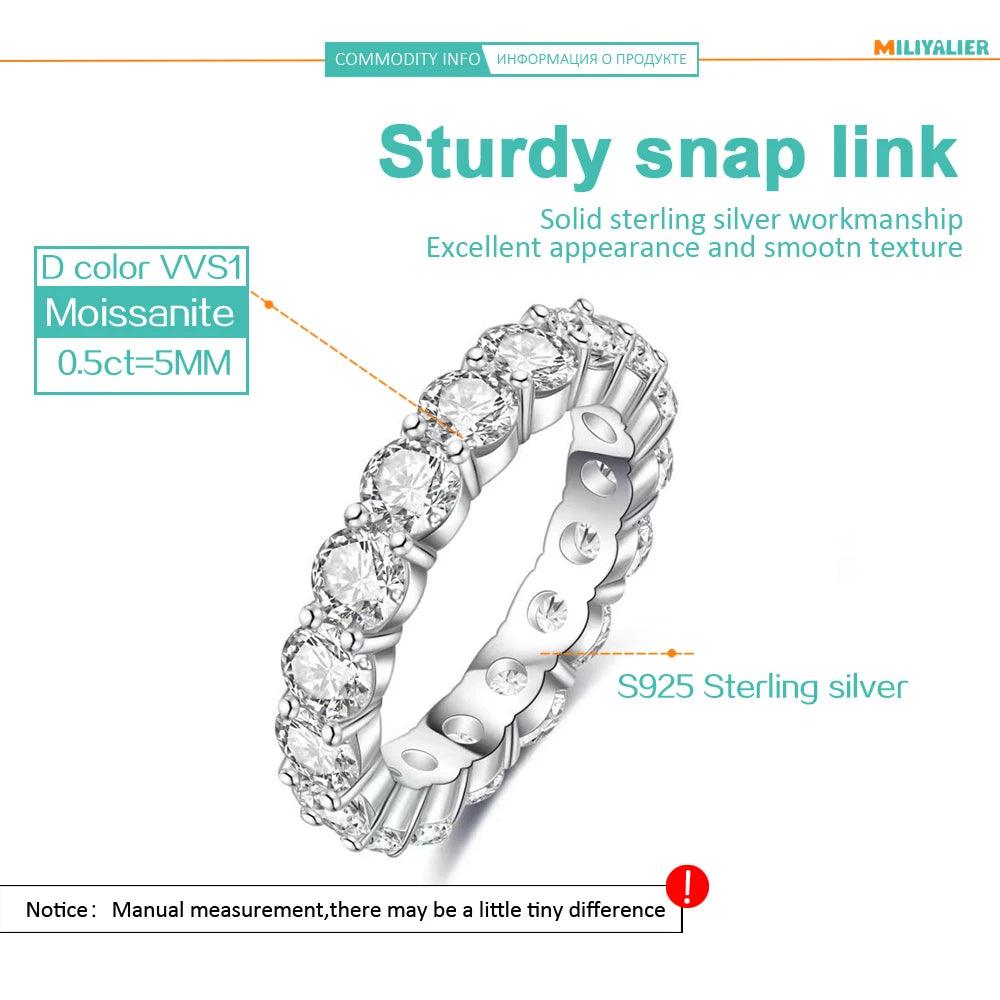 Lovers Round Full 0.3/0.5ct VVS1 D Moissanite Eternity Engagement Wedding Rings 925 Sterling Silver Fine Jewellery