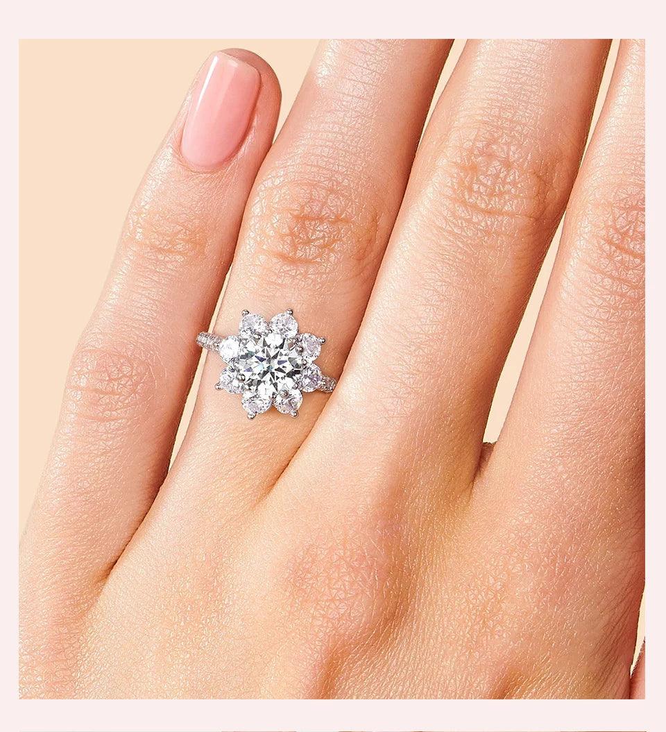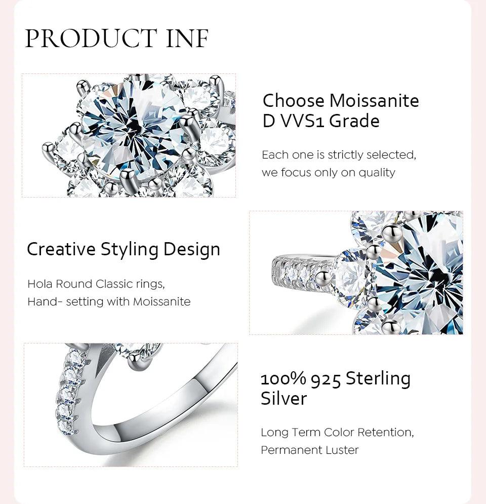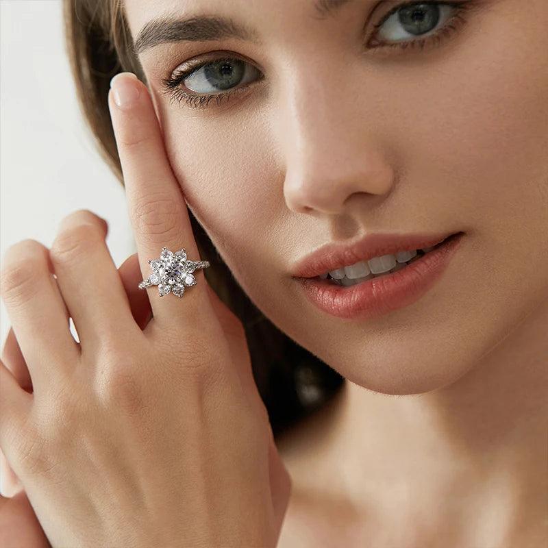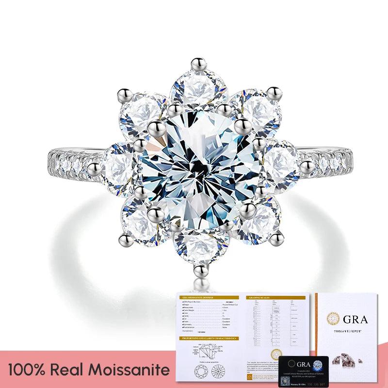 Sparkling Sun Flower Real 1-2 Carat Moissanite Diamond Wedding Engagement Rings, 925 Sterling Luxury Fine Jewellery