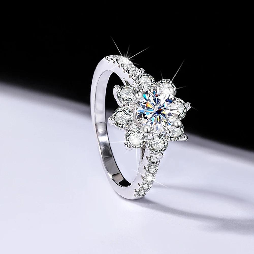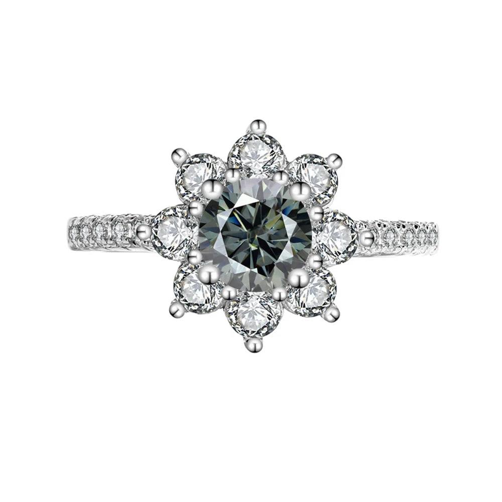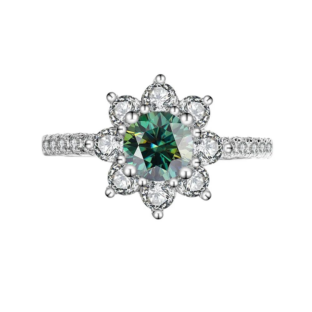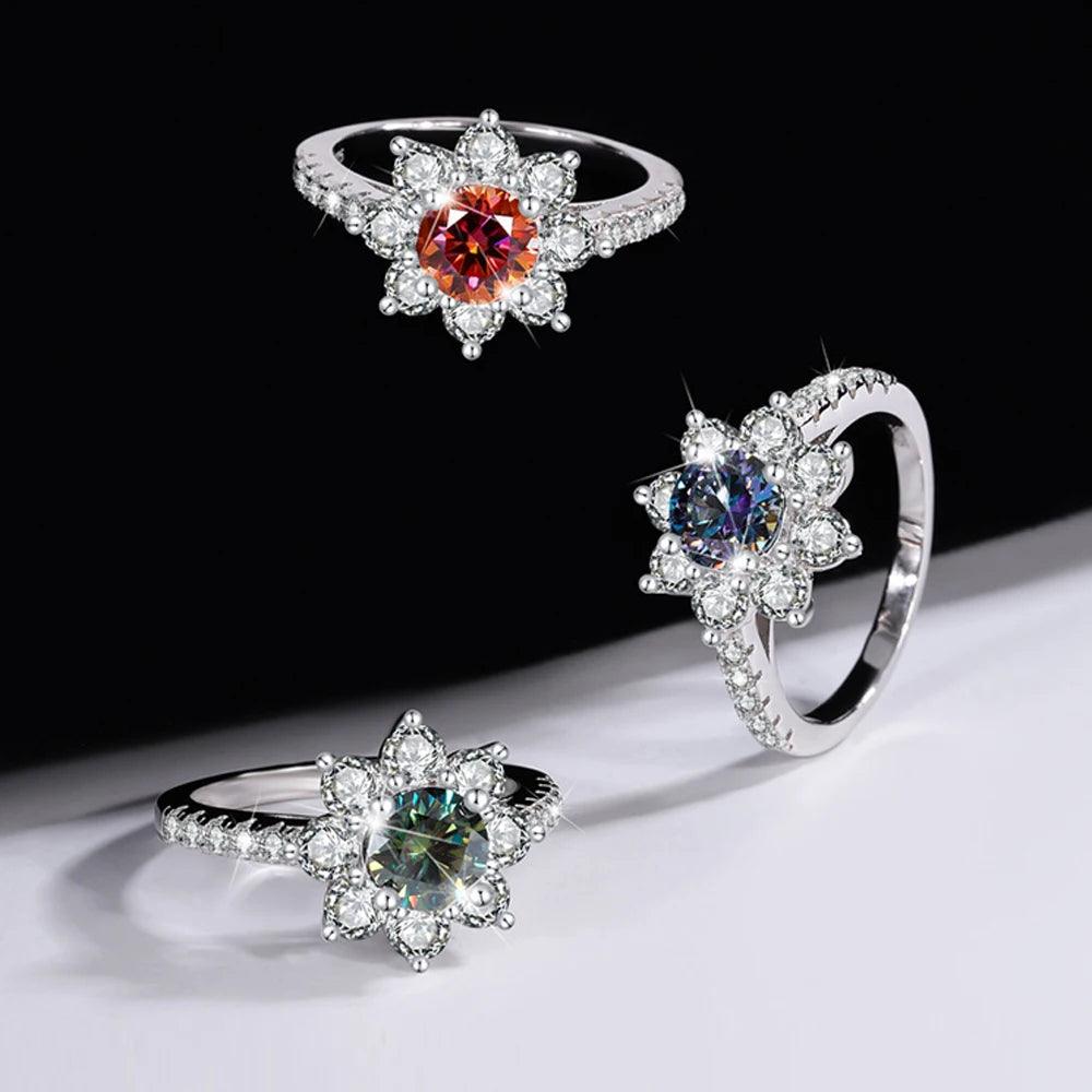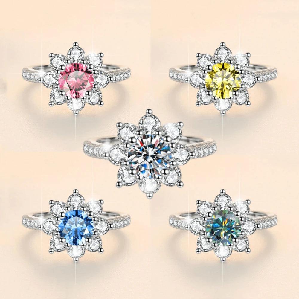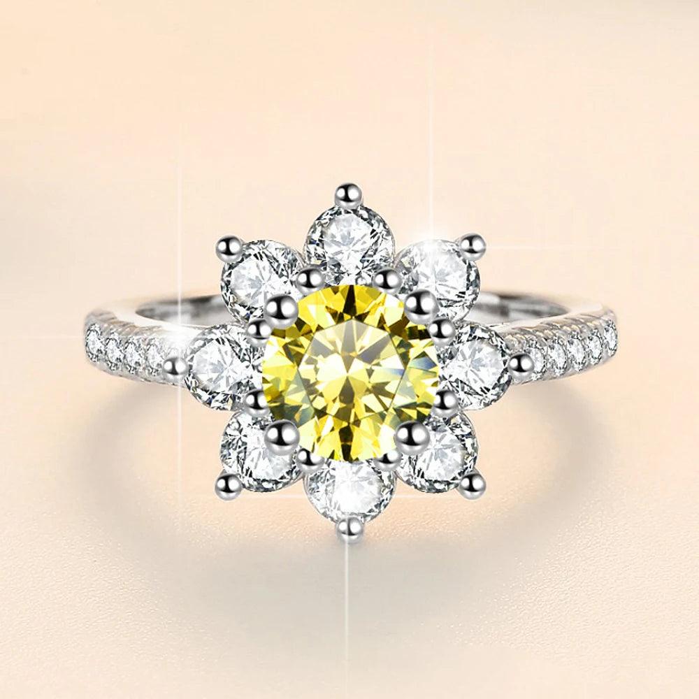 Sunflower Design VVS1 1/2CT Coloured Moissanite Diamonds Engagement Wedding Rings Silver GRA Certified Jewellery