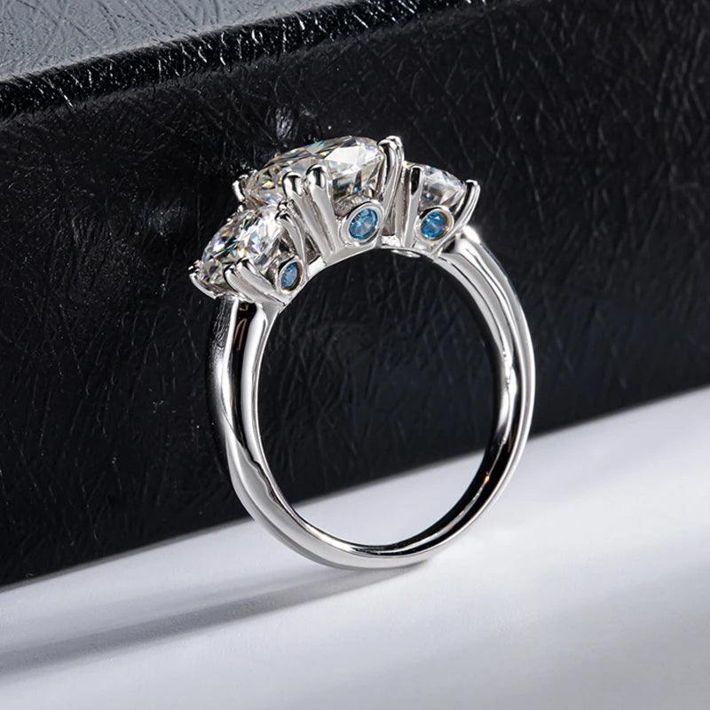 Superb 3 Stones D Colour VVS 5CT Moissanite Diamond Rings For Women Engagement Wedding Silver Certified Jewellery