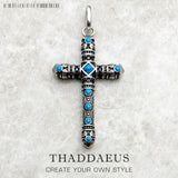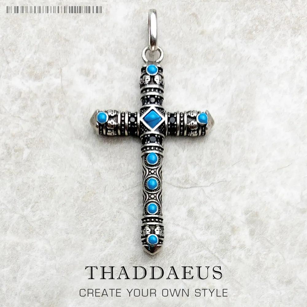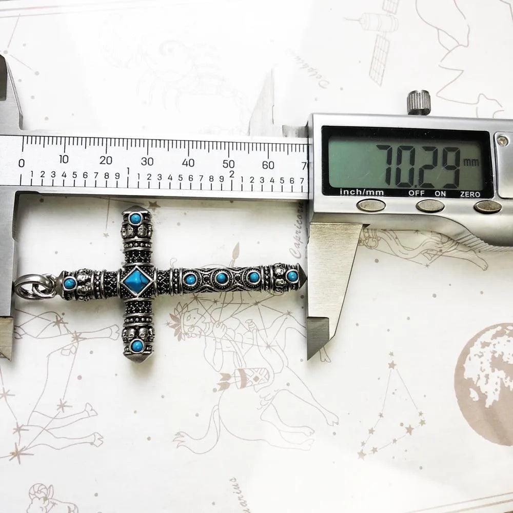 Beautiful Blue Stone Pendant Cross, Brand New Pure 925 Sterling Silver Turquoise Faith Gift For Women and Men