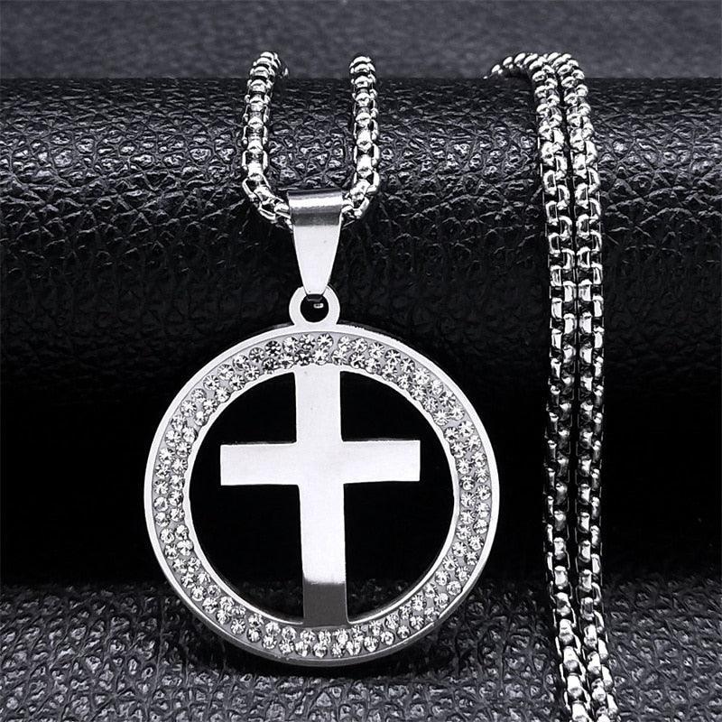 Jewelry Style: Cross Crystal Stainless Steel Round Pendant Necklace