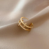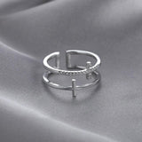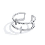 Silver Color Double Cross Flashing AAA Zircon Crytals Open Rings for Women - Christian Fashion Jewellery It's a timeless design crafted with excellence and quality, highlighting AAA-grade zircon crystals with a unique cross-shaped feature. Perfect for any occasion, these rings will be sure to impress.