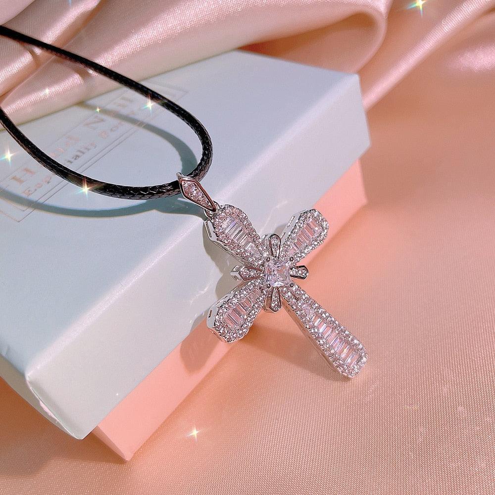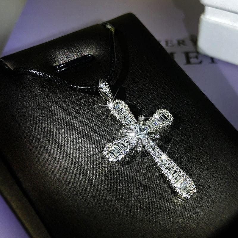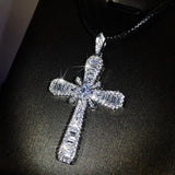 Exquisite White AAA Zircon Crystals Cross Pendant Necklace Women's 925 Silver Geometric Cute/Romantic Chain Religious Jewellery This crisp and timeless necklace is composed of 925 silver, making it a stunning piece of jewellery that is sure to last. The luxurious AAA Zircon Crystals add an elegant, romantic touch to your look.