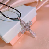 Exquisite White AAA Zircon Crystals Cross Pendant Necklace - Women's 925 Silver Geometric - Religious Jewellery