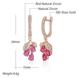 Amazing Red Pomegranate Flower 14K Filled Rose Gold AAA Zircon Diamonds Long Drop Earrings - Elegant Jewellery