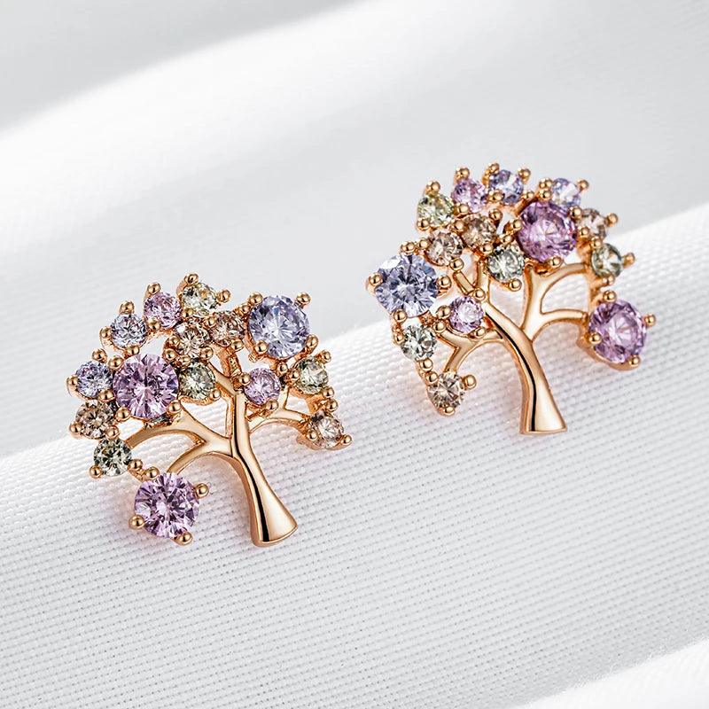 Charming 14K Rolled Rose Gold Fashion Exquisite Colorful Lucky Tree with AAA Zircon Crystals Stud Earrings