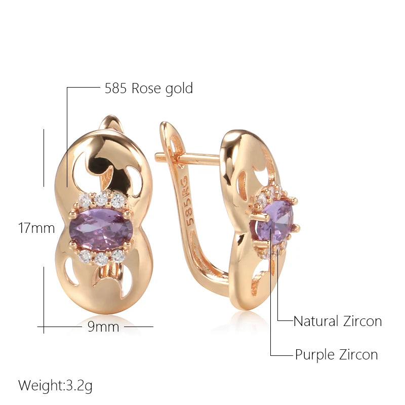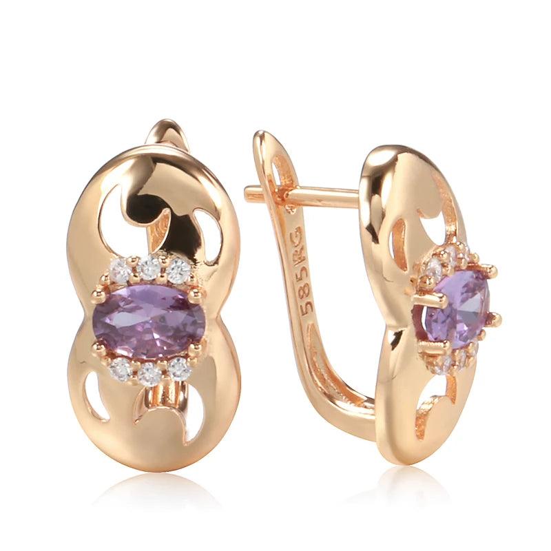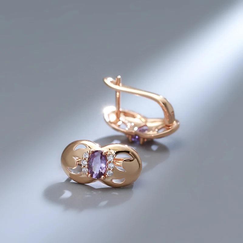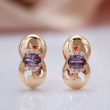 Charming Retro Oval Purple 14K Rolled Rose Gold AAA Zircon Diamonds Women's Stud Earrings - Fashion Jewellery