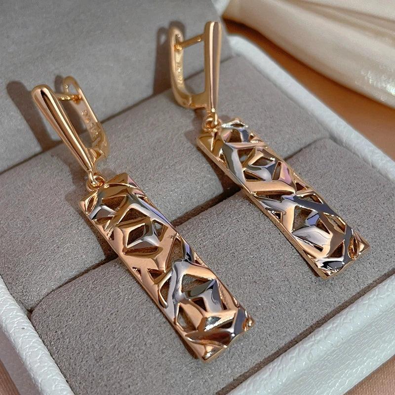 Latest Fashion 14K Filled Rose Gold and Silver Dichroic Plating Geometric Hollow Earrings - Fashion Jewellery