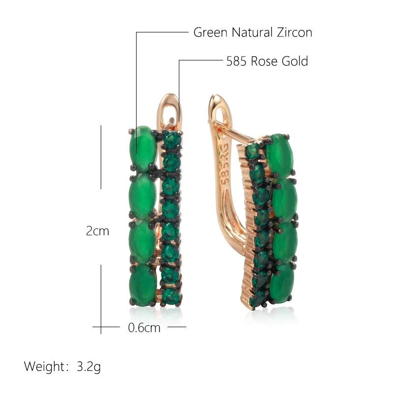 Latest Fashion Rolled 14K Rose Gold AAA Green Opal Zircon Crystal Drop Earrings, Vintage Style Jewellery