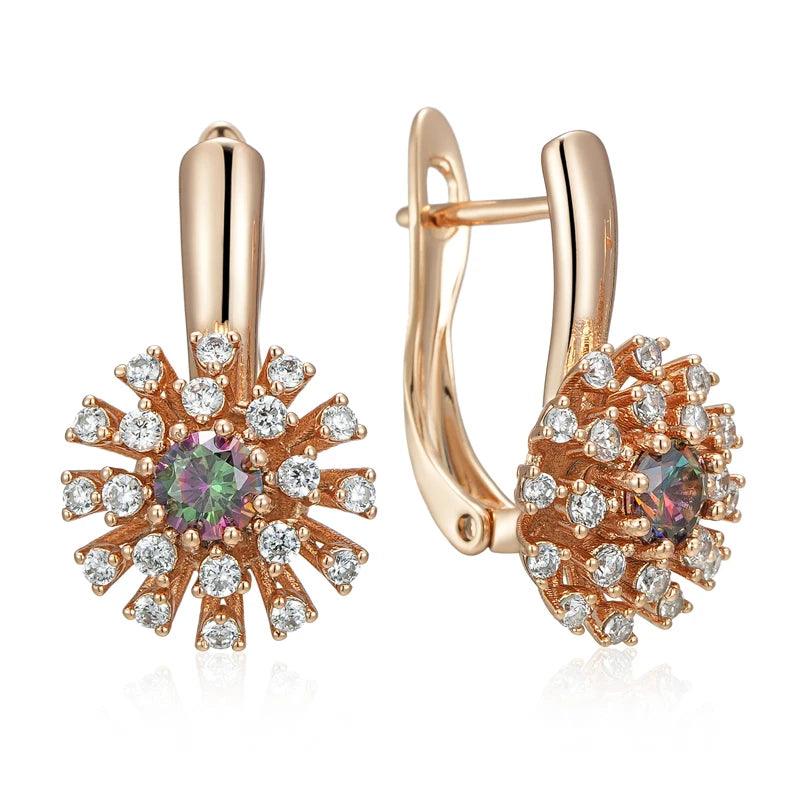 Luxury Filled Rose Gold of 14-Karat Purity Colorful AAA Zircon Crystals Flower Drop Earrings - Fine Jewellery