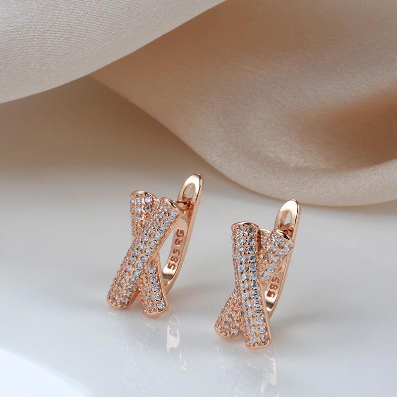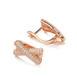New Filled 14K Rose Gold Micro Inlay AAA Zircon Diamonds Cross Clip Dop Earrings, Fashion Party Fine Jewellery