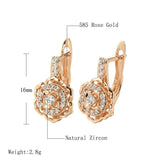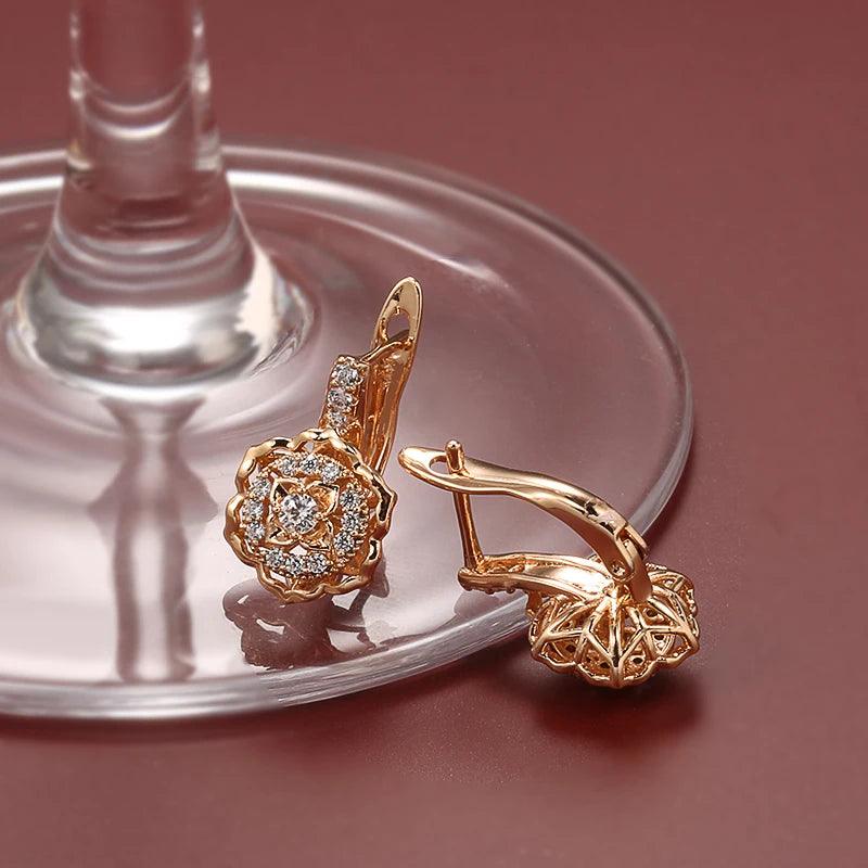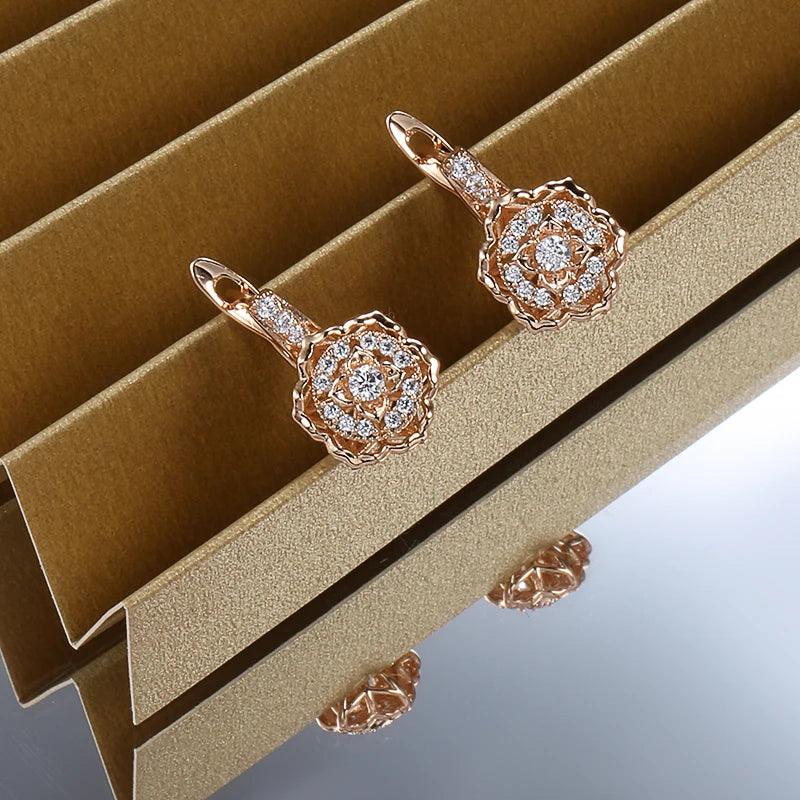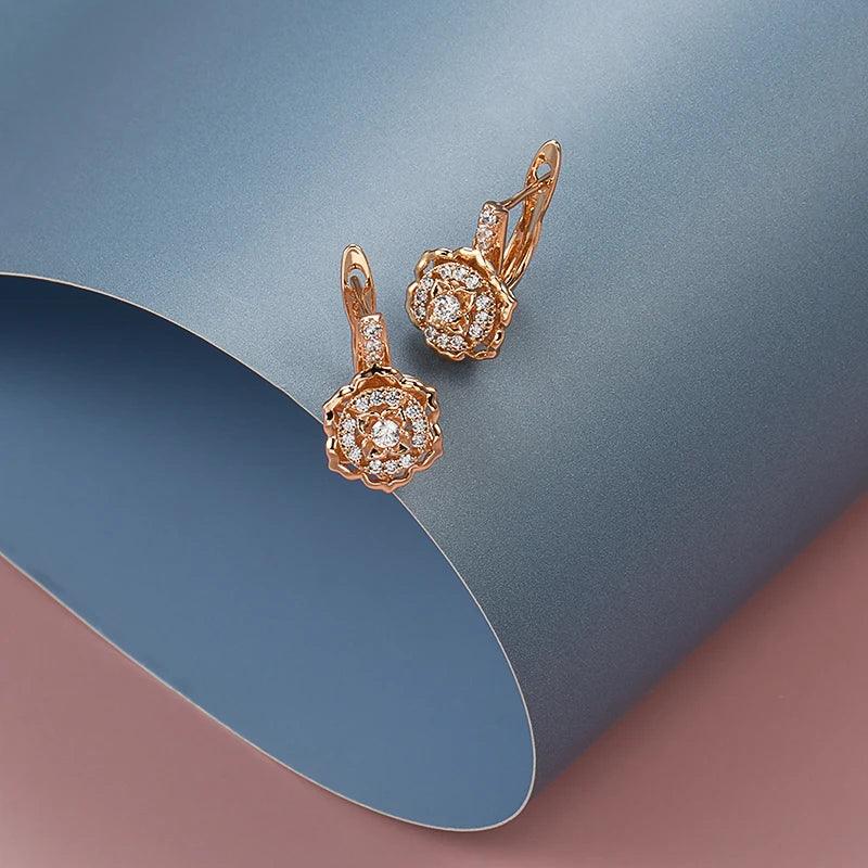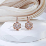 Sparkling Crystal Flower Dangle Glossy 14K Rolled Rose Gold AAA Zircon Diamonds Earrings - Fine Jewellery