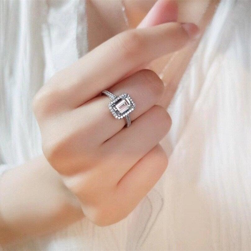 Beautiful Silver Emerald cut 2ct High Quality AAAA Cubic Zirconia Diamond Promise Engagement Ring