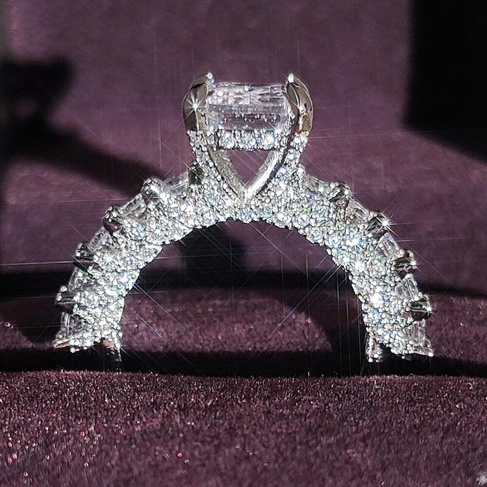 New Luxury Princess Cut Silver Color AAA+ CZ Diamonds Designer Engagement Ring