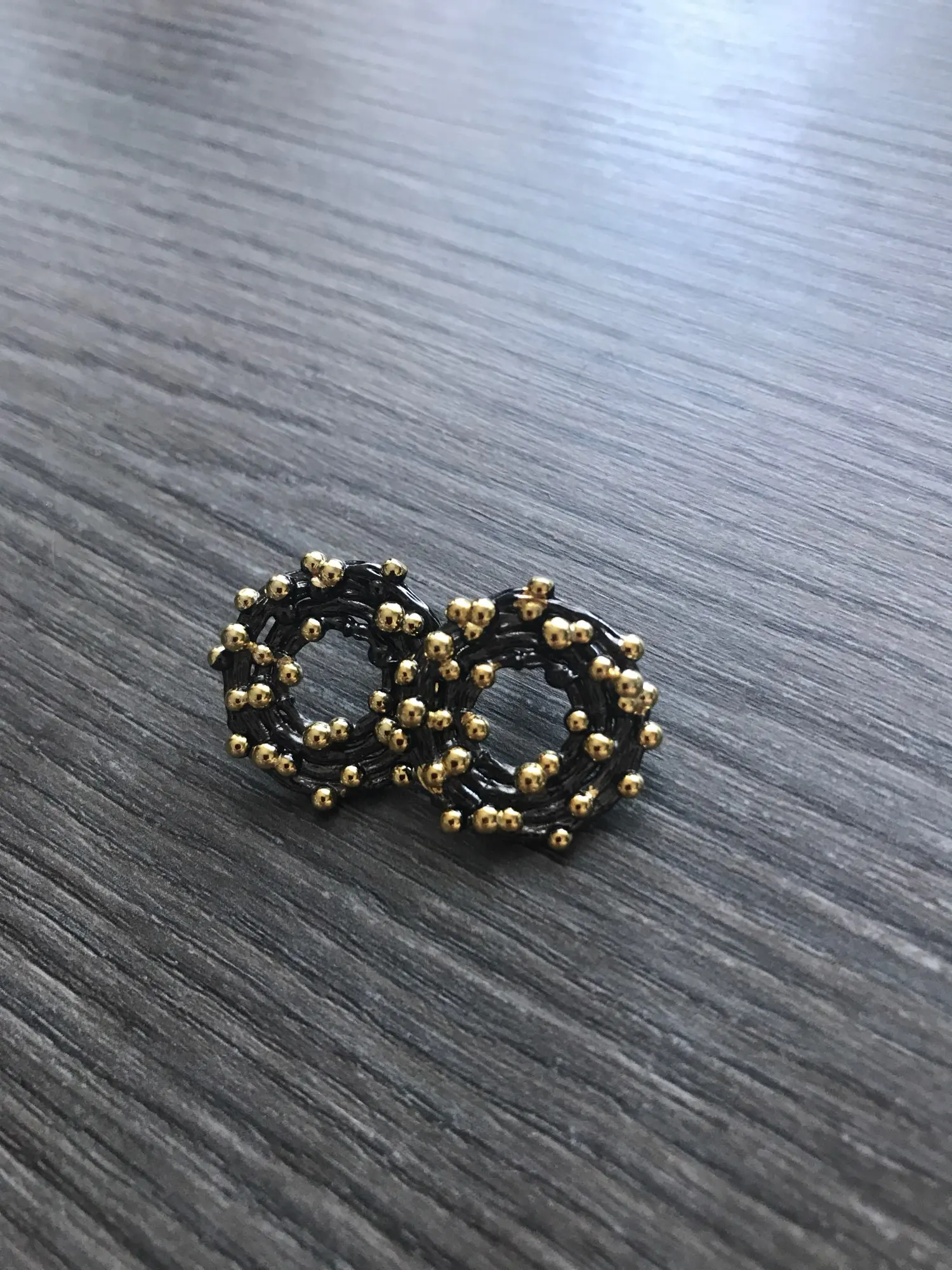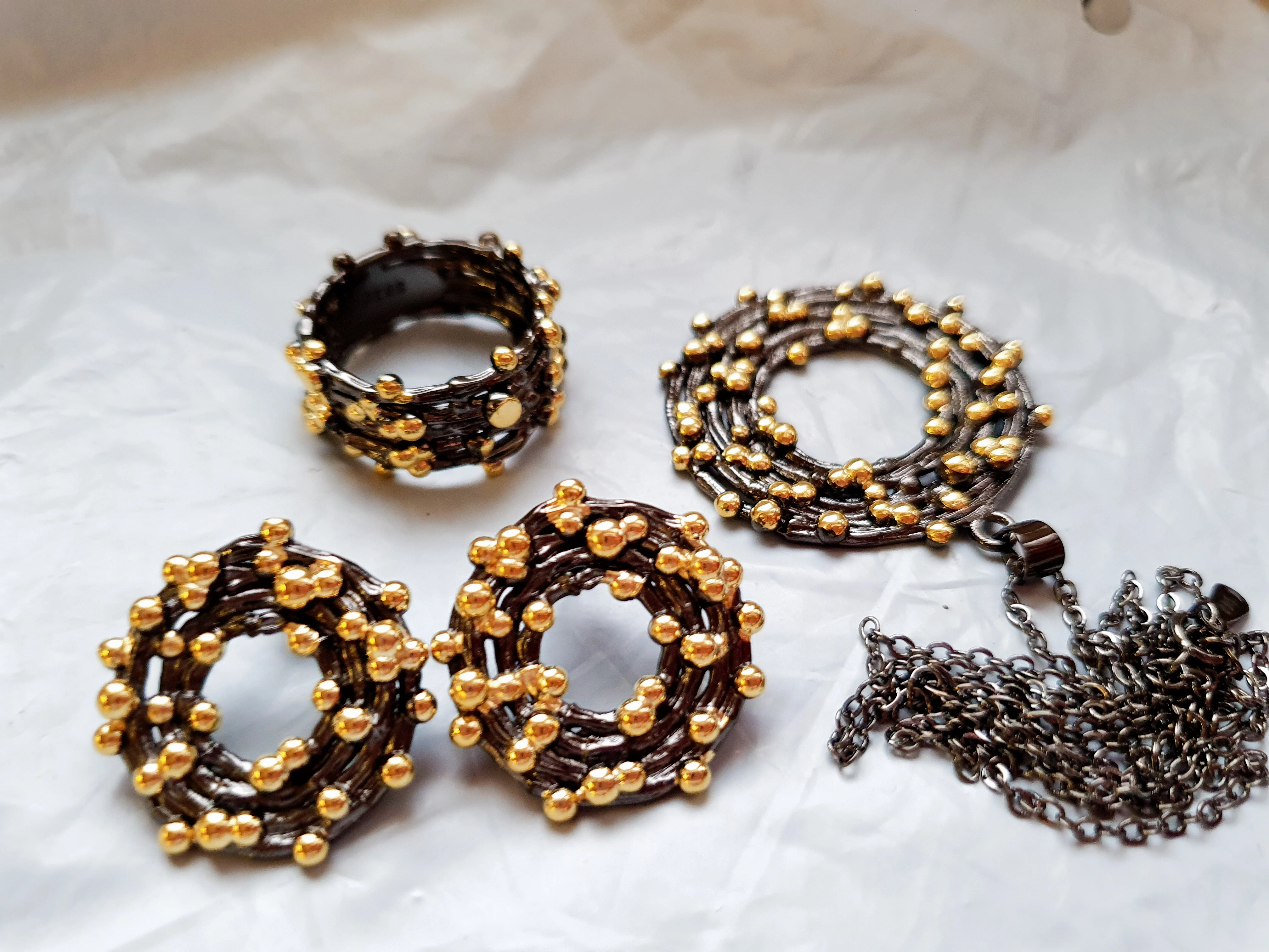 Unique Polka Dot Black Gold Ring Women;s 925 Silver Ladies Multi-layer Fashion Ring Set