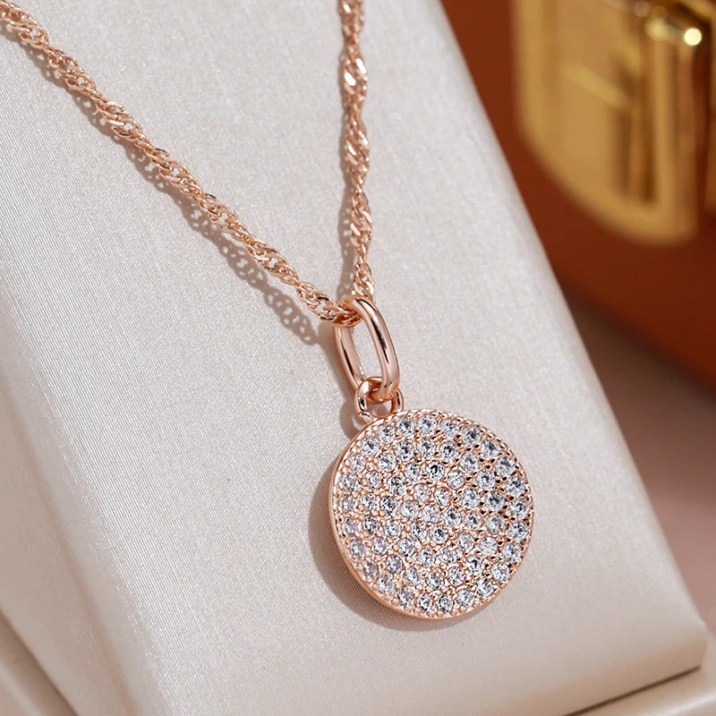 14K Filled Rose Gold White AAA Zircon Coin Round Pendant Long Women Necklace - Party Daily Matching Jewellery