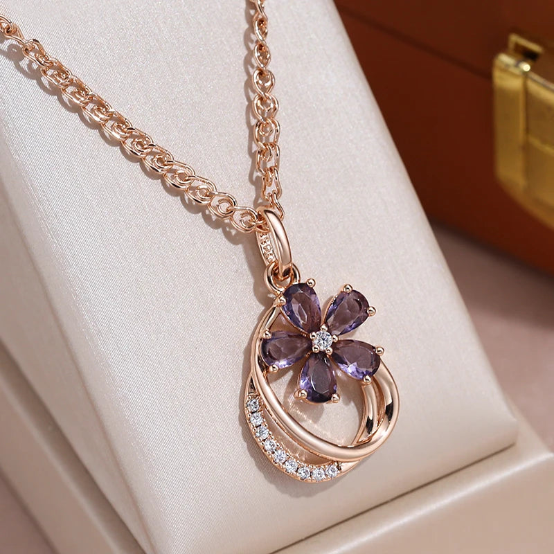 Amazing 14K Filled Rose Gold AAA Purple Zircon Crystals Flower Necklace - Luxury Vintage Style Jewellery