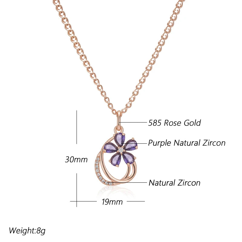 This luxurious jewellery item is a celebration of elegance and sophistication, perfect for those who appreciate the finer things in life. Each Zircon Crystal is meticulously set to capture and reflect light, creating a dazzling display that enhances the necklace's enchanting floral motif. The warm tones of the Rose Gold complement the rich purple hues, resulting in a harmonious blend that is both captivating and refined.