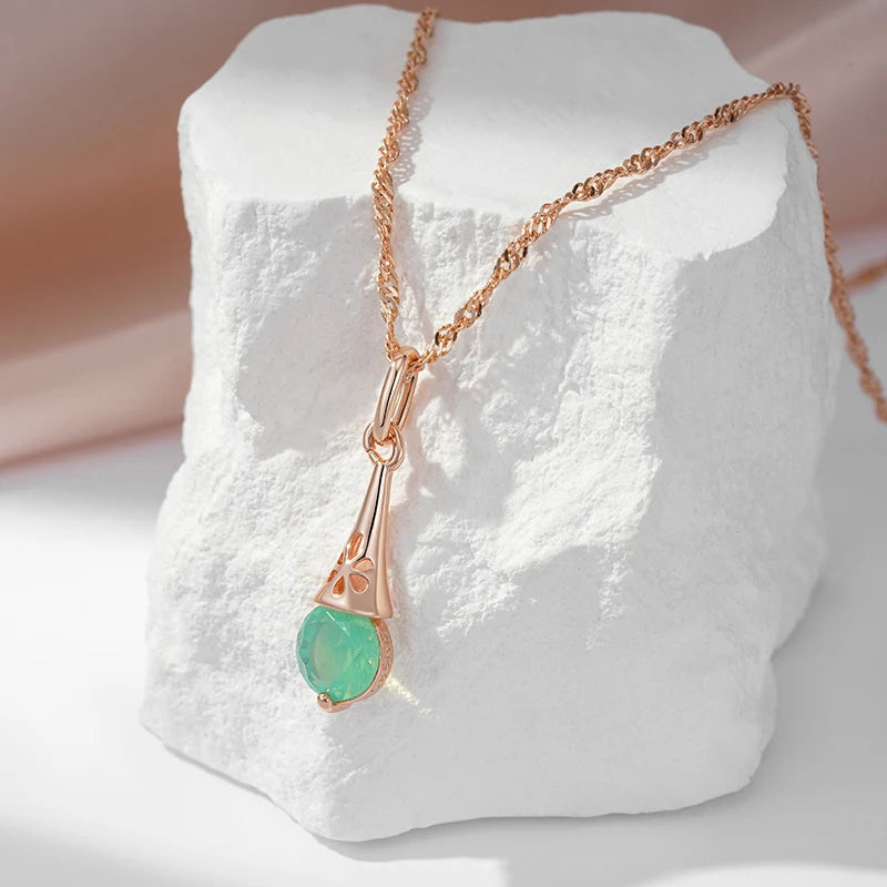 Amazing 14K Filled Rose Gold Shiny Green AAA Zircon Luxury Pendant Necklace For Women - Fine Jewellery