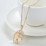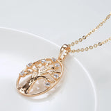Classic 14K Filled Rose Gold Long Chain Luxury Life Tree Geometric Oval Pendant AAA Zircon Diamonds Necklace