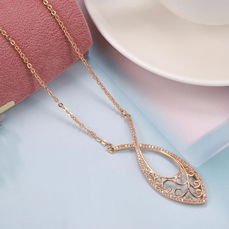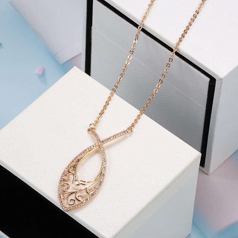 Leaf Shape Hollow Big Size 14K Filled Rose Gold Full Paved AAA Zicon Diamonds Necklaces - Party Jewellery