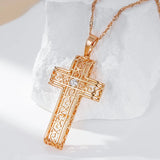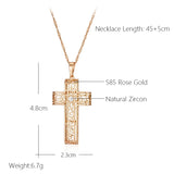 Luxury 14K Filled Rose Gold With AAA Zircon Diamonds Glossy Hollow Cross Pendant Necklace - Fashion Jewellery