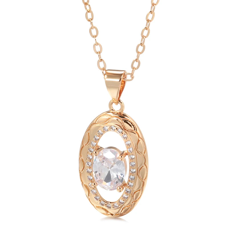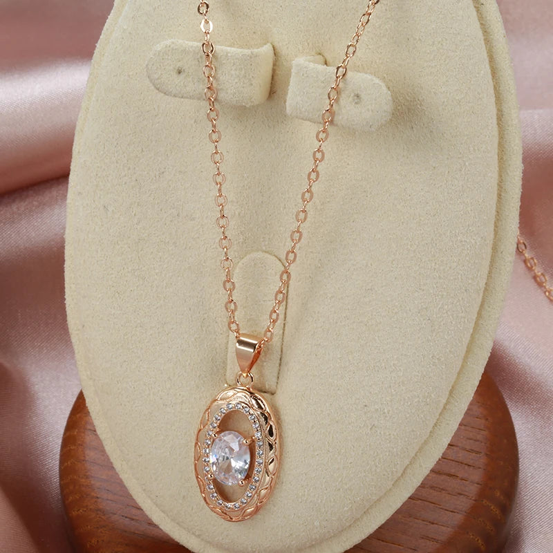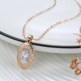 Luxury Oval 14K Filled Rose Gold AAA Zircon Diamonds Pendant Twine Texture Long Chain Fashion Fine Jewellery