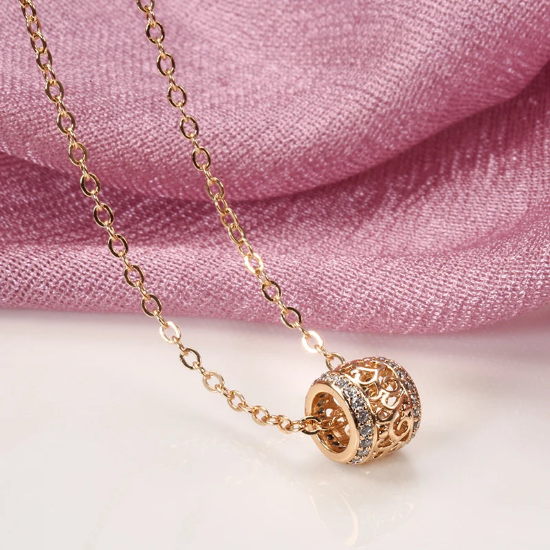 Luxury Trendy 14K Filled Rose Gold AAA Zircon Diamonds Barrrel Necklace For Women - Fine Jewellery