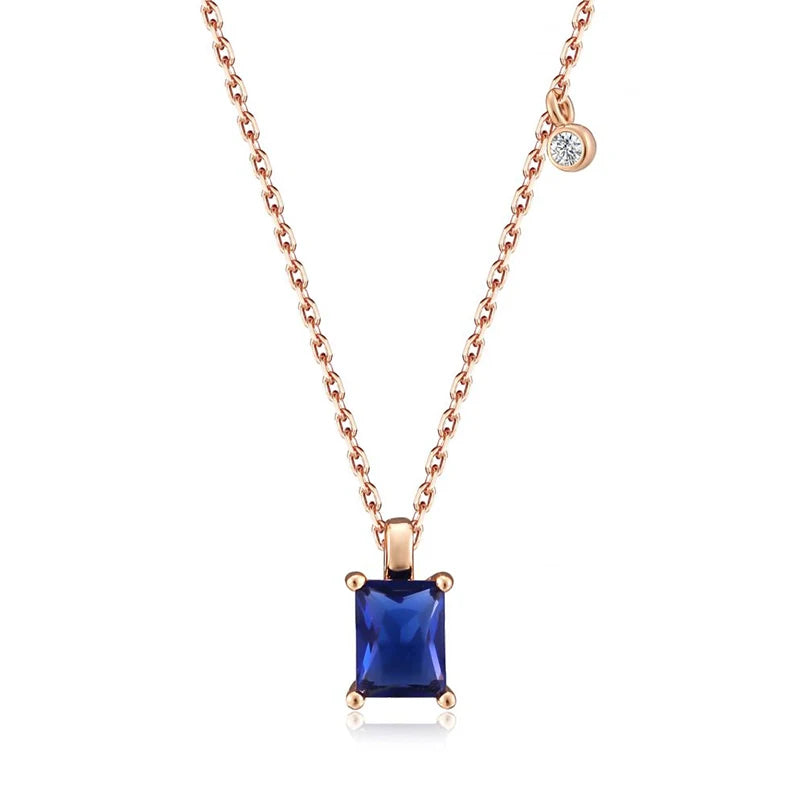 Simple Square Cut AAA Blue Zircon Crystal 14K Filled Rose Gold Round Ball Chain Necklace - Fashion Jewellery