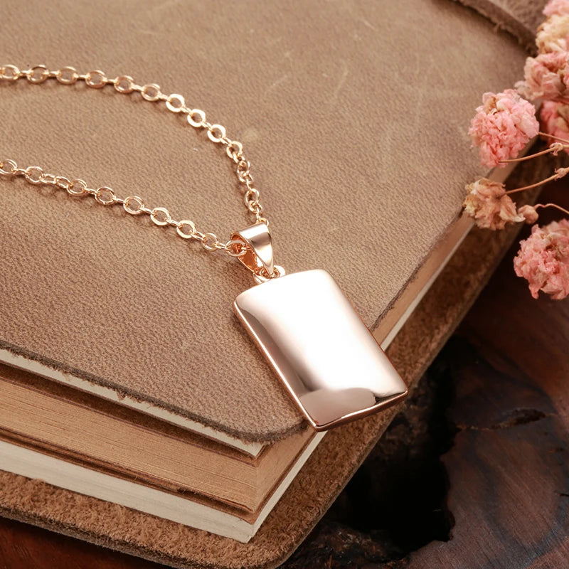 Trendy Elegant Glossy 14K Rolled Rose Gold Square Pendant Necklace For Women - Party Fine Jewellery