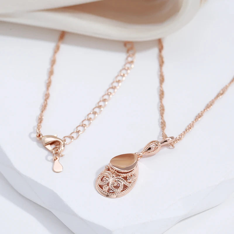 Vintage Glossy Simple Water Drop Filled Rose Gold of 14-Karat Purity Pendant Necklace - Ethnic Style Jewellery