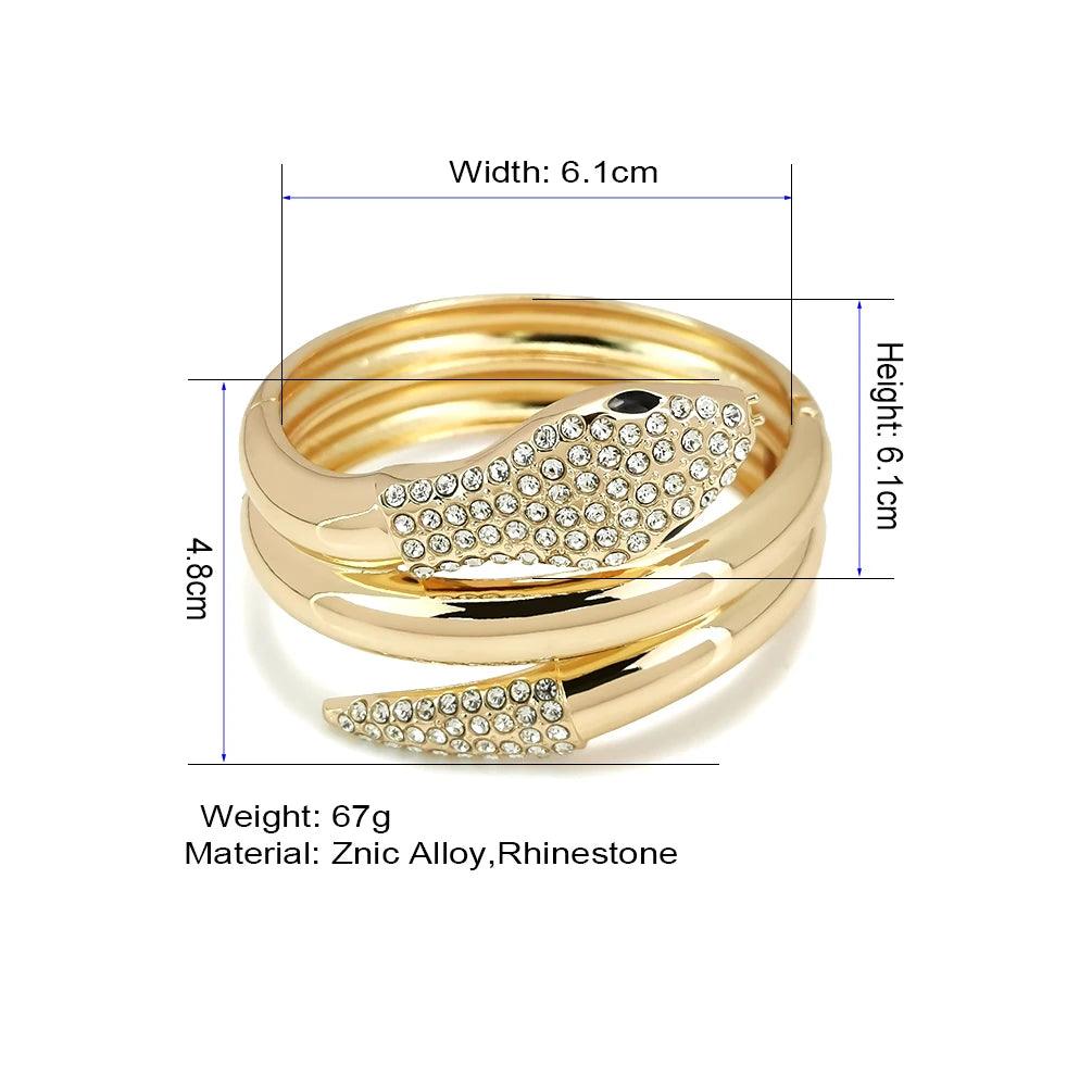 Punk Snake Cuff Bracelet Rhinestone Animal Alloy Bangles for Women - Statement Fashion Jewellery Big Bracelets
