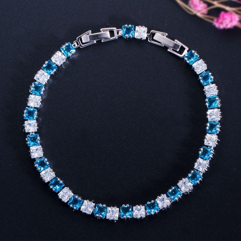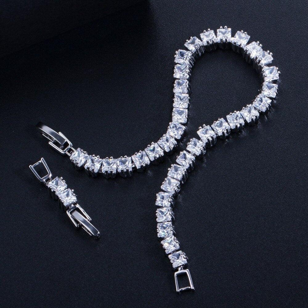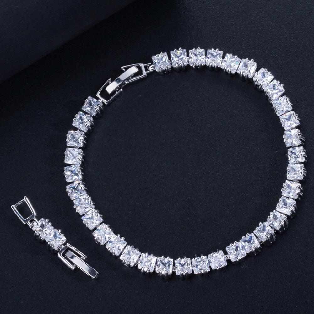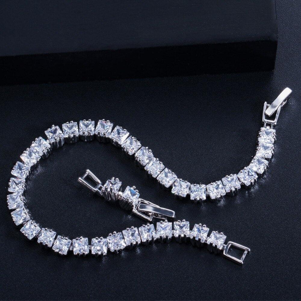 DELIGHTFUL High QualityPrincess Cut Sparkling Square AAA+ Cubic Zircon Simulated Diamonds Tennis Bracelets