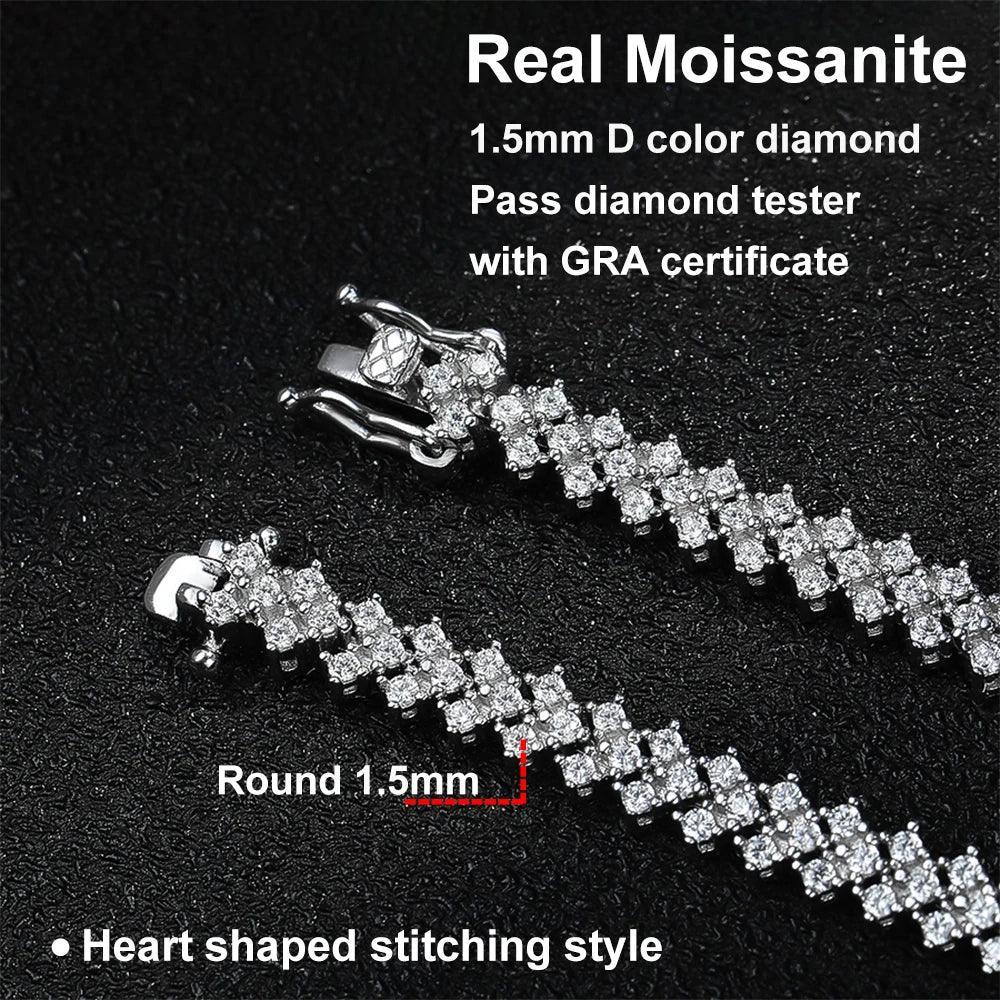 Elevate your style with this exquisite tennis bracelet designed for women. Crafted from 925 sterling silver, this bracelet features 18K white gold plating, adding a touch of luxury to your ensemble. The bracelet is adorned with stunning 1.5mm D color VVS1 real moissanite diamonds, known for their brilliance and sparkle. With its elegant design and high-quality craftsmanship, this bracelet is a perfect addition to any jewelry collection. Whether you're attending a special occasion or simply want to add a touch of glamour to your everyday look, this bracelet is sure to impress.