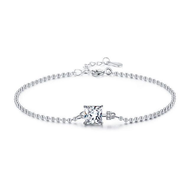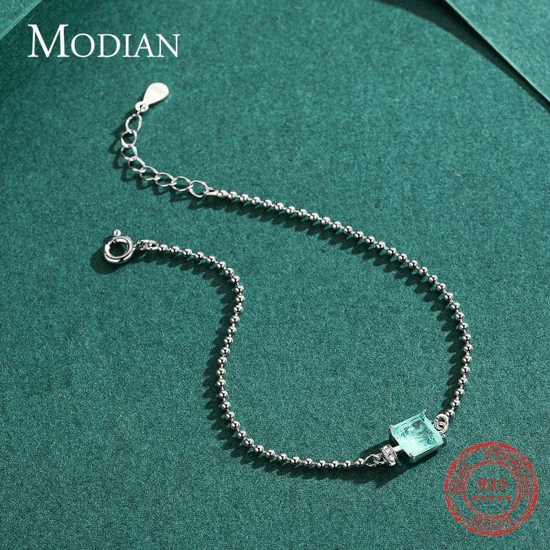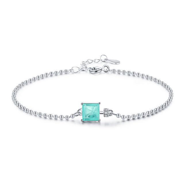 Luxury Women Silver Color Square Sterling Tourmaline Beads Chain Bracelet For Statement Jewelry