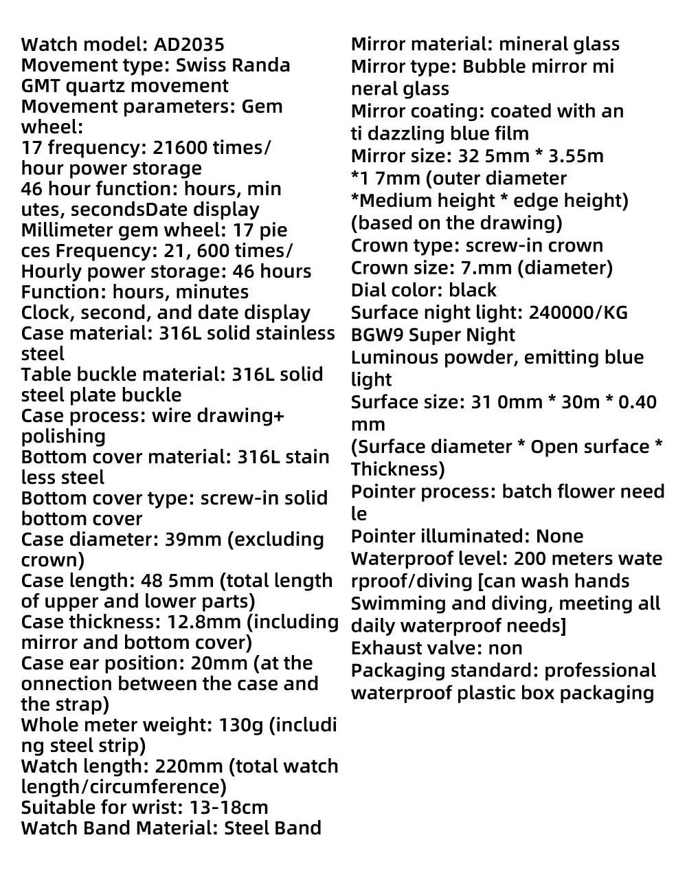 Waterproof level: 200 meters waterproof/diving [capable of washing hands, swimming, diving, meeting all daily waterproof needs]
