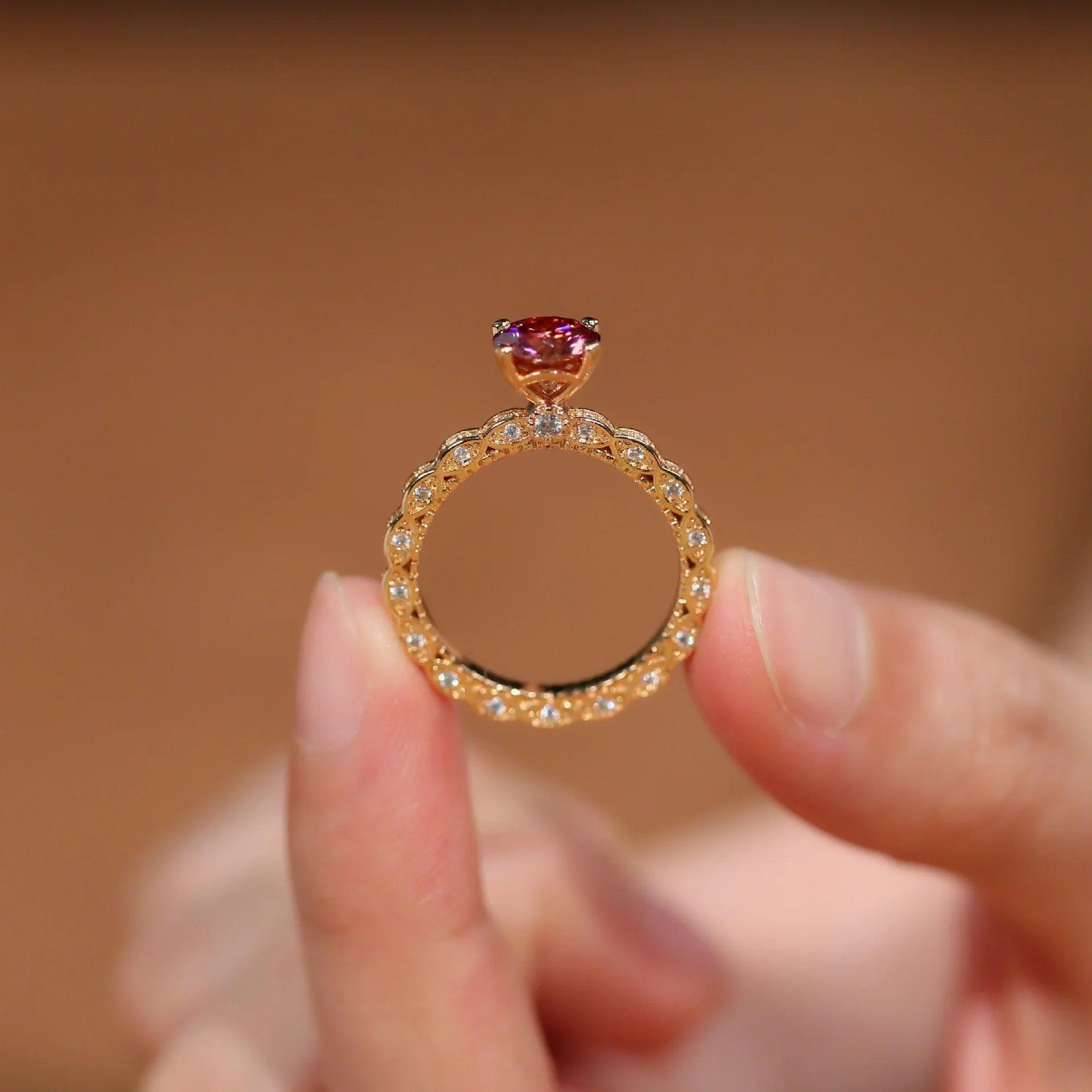 Whether you are looking for a unique engagement ring, a gift for a loved one, or simply a beautiful addition to your jewelry box, this sparkling moissanite ring is sure to impress. Its versatility allows it to be worn on various occasions, while its exquisite design ensures that it will be cherished for years to come. With its combination of quality craftsmanship, stunning aesthetics, and ethical considerations, the GRA Certified Sparkling 1CT Round Pink Moissanite Diamond Ring is a remarkable piece that embodies both beauty and integrity.