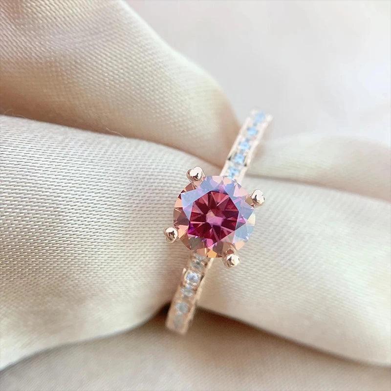 GRA Certified Sparkling 1CT Round Pink Moissanite Diamond Rings for Women Real Silver Wedding Party Fine Jewellery