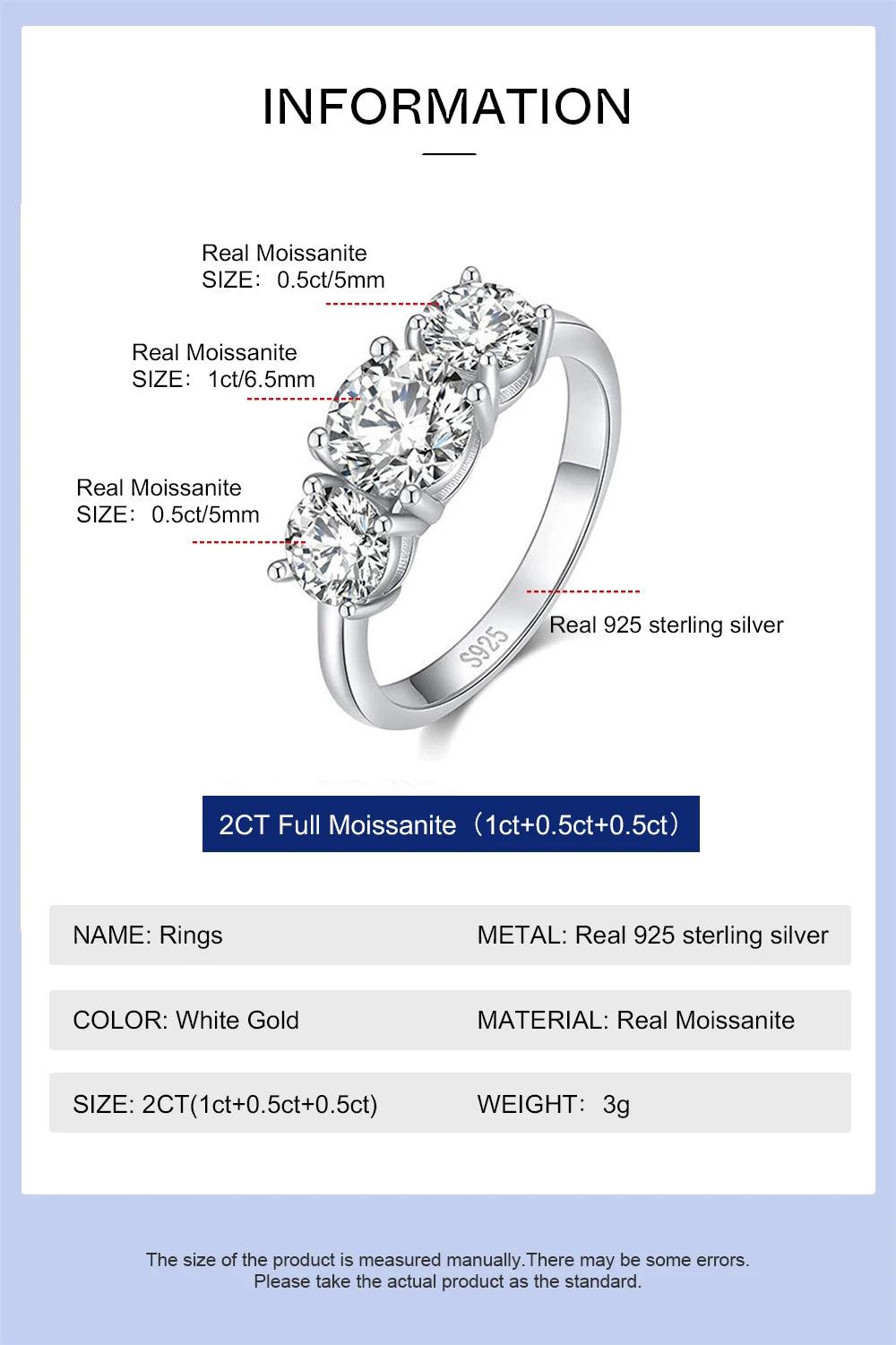 Carat : 2CT Full Moissanite (1ct+0.5ct+0.5ct)