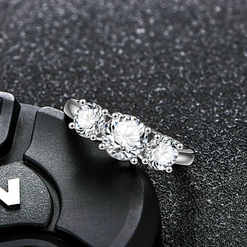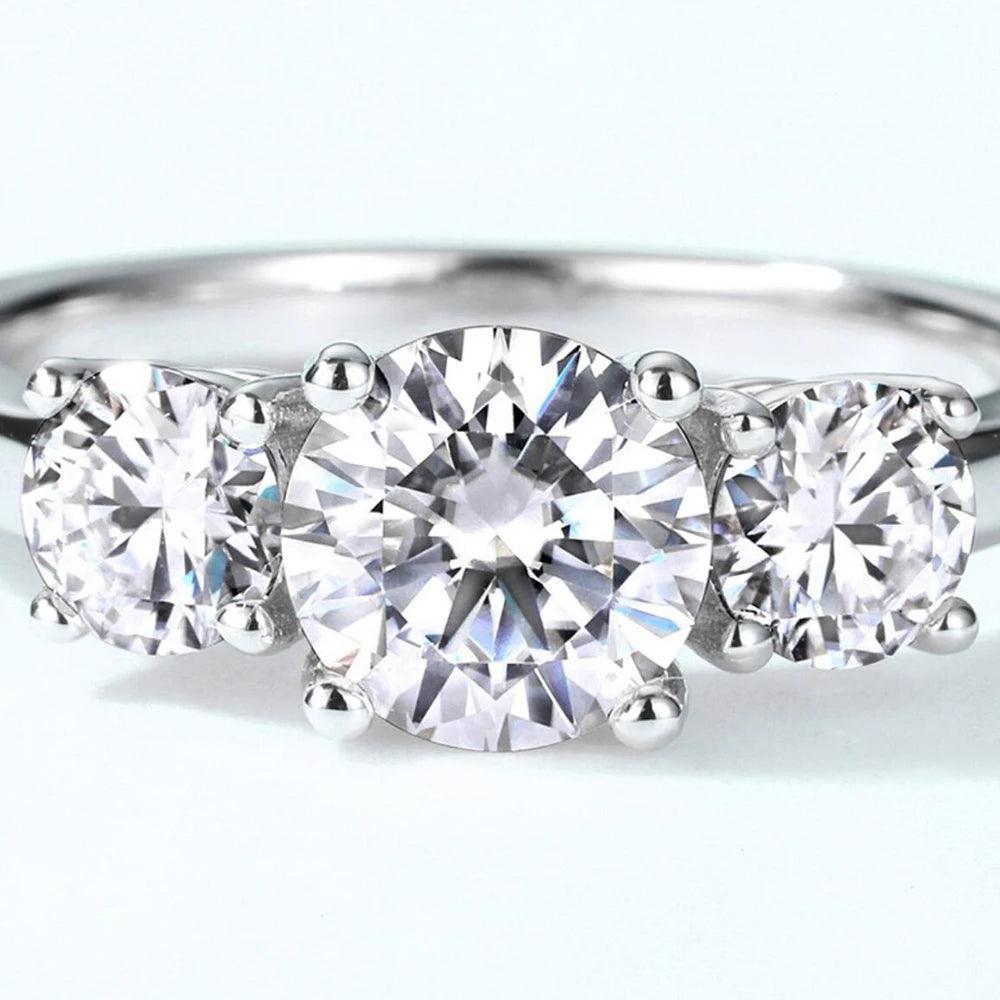 Luxury 3 Stone Round Cut D Colour 4CT Moissanite Diamonds Rings Sterling Silver 18KGP Engagement Wedding Jewellery