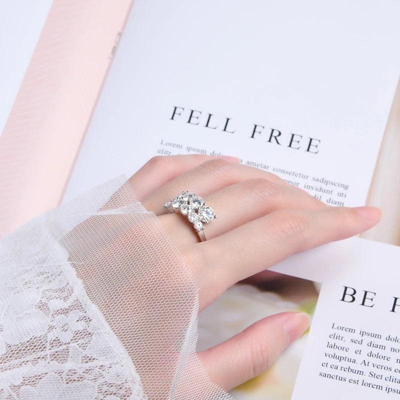 VVS moissanite stones go through half of the wedding or engagement rings for women.The stones shine as real diamonds
