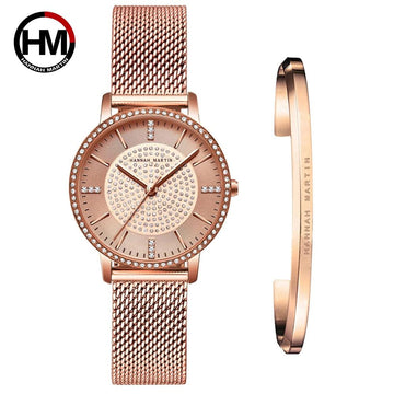 New Arrival Simple Elegant Rose Gold Women Bracelet Watches Set Quartz Movement Stainless Steel Mesh Watches