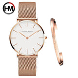 Elegant Creative Design Rose Gold Tone 1 Set Bracelet Quartz Watch Waterproof Stainless Steel Mesh Ladies Watches
