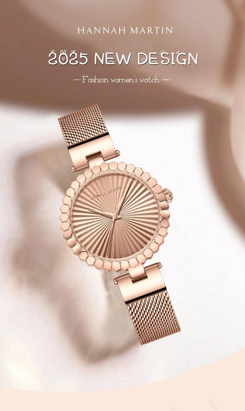 Luxury Brand Elegant Gold Tone Geometric Dial Women's Quartz Movement Watches Stainless Steel Mesh Belt Watches