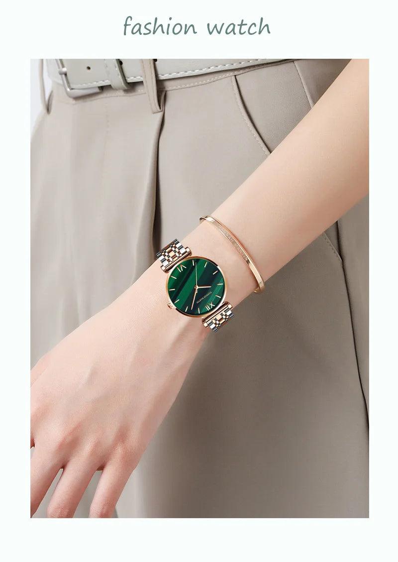 New Design Elegant Green Malachite Dial Ladies Watches Japanese Quartz Movement Stainless Steel Strap Waterproof Watches