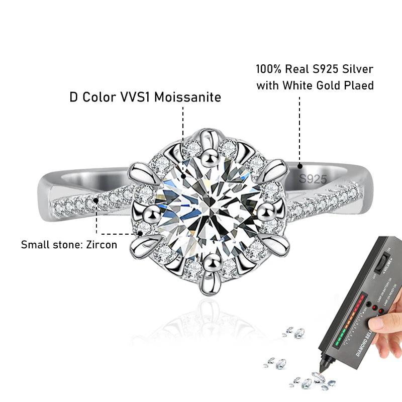 Dazzling VVS11CT Moissanite Diamond Rings for Women Silver Classic Engagement Wedding Jewellery With GRA Certificate