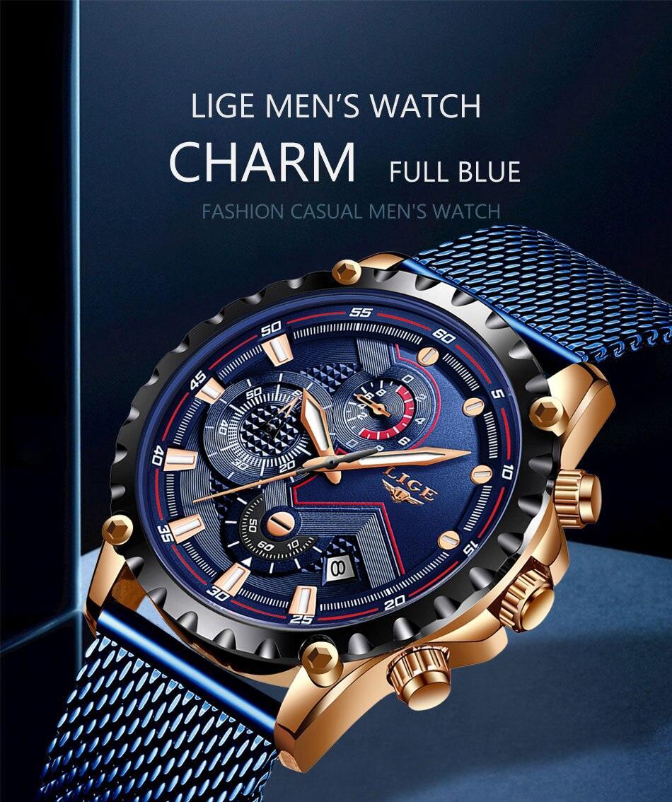 New Blue Top Brand Luxury Waterproof Casual Mesh Belt Fashion Quartz Wristwatches
